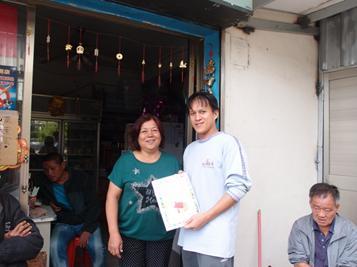 學校名稱:金岳國小 活動名稱:表揚學校愛心商店 辦理日期:102年9月27日 舉辦地點:金岳社區 參加對象:學務組長、愛心商店老闆 活動簡述說明:為感謝「愛心商店」協助學校發現學生在校外遊蕩,能立即與學校教導處聯繫。並在合理情況下,提供電話供學生緊急聯絡之用。學生在校外發生突發事件時,也能提供適當的協助及通知學校處理。 | |