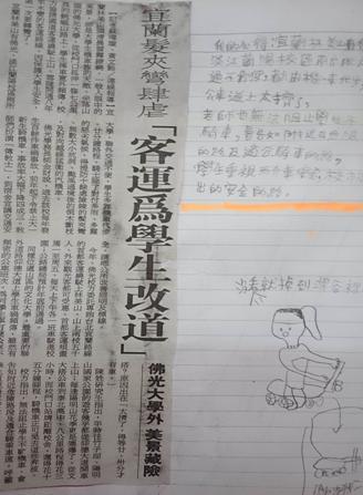 2.搜尋報導:學生利用10分鐘尋找交安事件的報導,並剪貼於日記上。