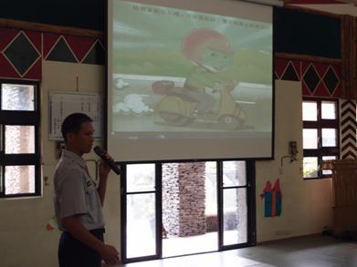 活動簡述說明:副所長指導交通安全各個主要發生事故特性態樣,從騎乘摩托車注意事項,轎車確實保留安全車距,行駛中的死角等各方面,進行影片及ppt的宣導,希望學生能學會並能回家轉知父母交通安全安全注意事項。
