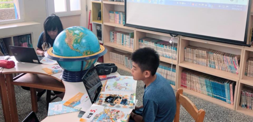 兩節社會課時間,時而拿出鉛筆翻翻書頁與旋轉著地球儀,時而開啟筆電平板,80分鐘愉快的上課時光!