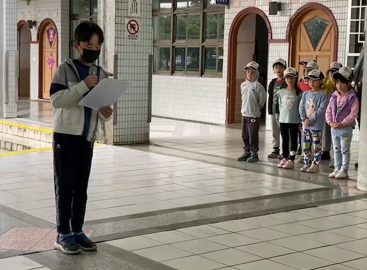 六忠楊建辰是全校唯一一位客家語四縣腔的學生 每週三在客語葉嘉惠老師一對一的授課中已經有長足的進步 練習好一段時間後 這週二建辰特別在學生朝會時間上台 為大家講述小烏龜的故事 小烏龜不懼怕其他動物的嘲...
