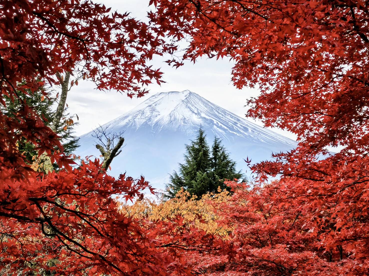 從下吉田駅走往新倉富士淺間神社,路邊普通民宅的後院竟然也是五彩斑斕的秋色,難怪人家是觀光大國。