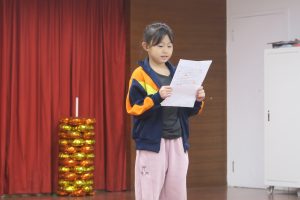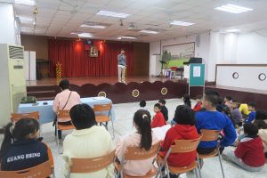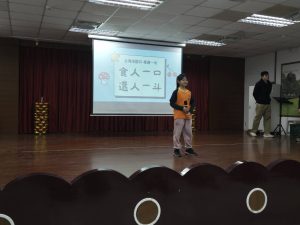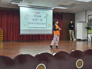 四年級學生於朝會時分享閩南語俗諺,