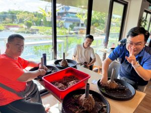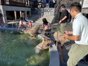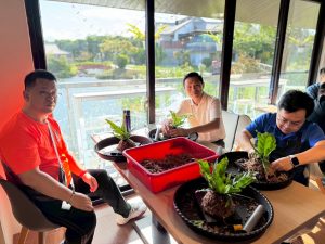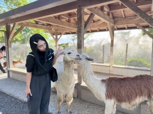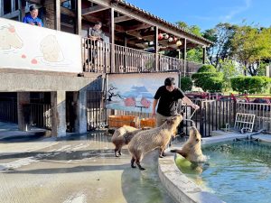 導覽老師帶著我們近距離親近梅花鹿、羊駝、水豚君,了解他們的生活習性;說明園區內目前有的生態植物與養護方式,最後,導覽老師教我們利用水苔、交叉繞繩的方式固定植物,DIY上板,成功!