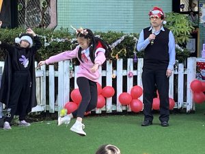這次表演內容豐富,中、英語歌唱、舞蹈、鋼琴獨奏、古箏表演,陀螺、踢毽,還有自然科學靜電秀,在神秘嘉賓–聖誕老公公出現的那一刻,全場的氣氛HIGH到最高點,最後在聖誕老公公發放禮物中畫下完美句點同學們 ! 相約明年再會啦~