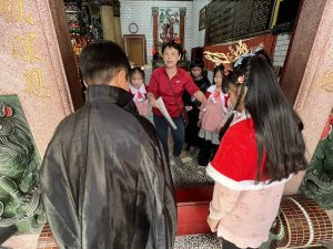 ⛩️廟宇巡禮認識社區廟宇,一個心靈寄託、信仰的中心,為人們帶來心靈的平靜。社會老師帶著學生認識廟宇中祭祀的主神三山國王,廟宇裡的匾額、廟門上的神荼鬱壘、剪黏人物裝飾、彩繪龍柱都在訴說著一段段神祇的事蹟、傳說與習俗信仰。