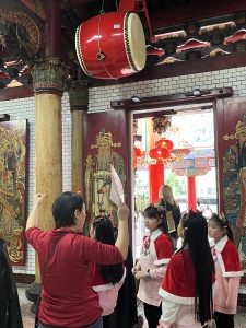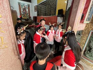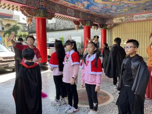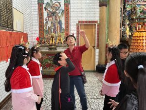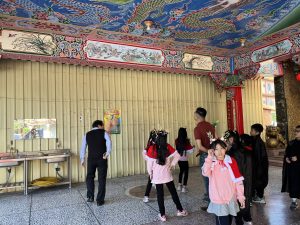 ⛩️廟宇巡禮認識社區廟宇,一個心靈寄託、信仰的中心,為人們帶來心靈的平靜。社會老師帶著學生認識廟宇中祭祀的主神三山國王,廟宇裡的匾額、廟門上的神荼鬱壘、剪黏人物裝飾、彩繪龍柱都在訴說著一段段神祇的事蹟、傳說與習俗信仰。