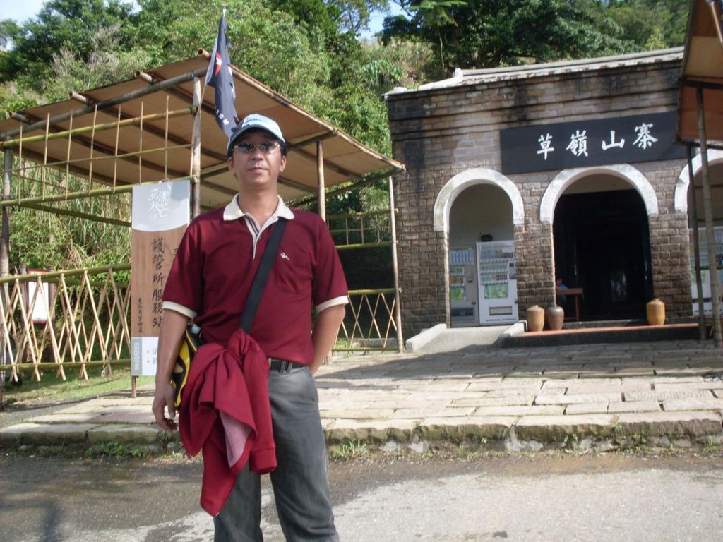 97.11.14草嶺古道校外教學  走著走著,人都不見了,只好獨自在山寨前留影。