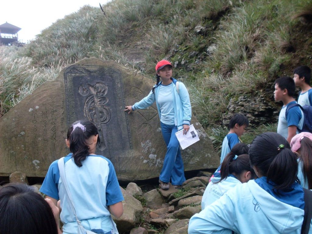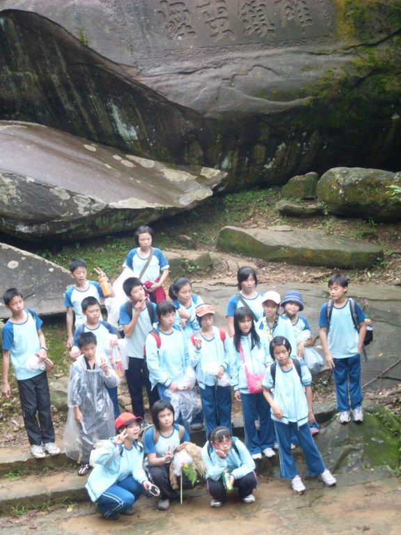 97.11.14草嶺古道校外教學  終於在虎字碑前發現眾人,而惠君老師正在為學生解說虎字碑的  由來。