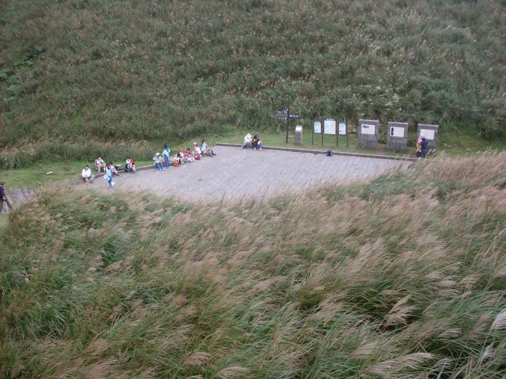 97.11.14草嶺古道校外教學  中午時分,大夥回到最高處享用午餐及休息。記得在下遊覽車前曾叮嚀學生的午餐要帶下車,不料在此卻發現我的午餐麵包竟然放在車上,還好平時對學生不錯,有學生伸出援手,將他的麵包與我分享,真是感恩!(心得:下次再來的話,應該從福隆上來,因為看到其他遊客的手上都拎著便當,霎時覺得他們好幸福喔。)