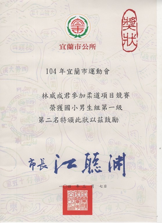六忠 林威成 同學 104年宜蘭市運動會柔道競賽 再奪獎Post author:汪耀文Post published:2015 年 3 月 13 日Post category:學期學生活動預定本校六年忠班 林威成 同學榮獲104年宜蘭市運動會柔道競賽 國小 男生組 第一級 第二名 殊榮與您一同分享這份榮耀 相關內容101學年度第2學期學校行事曆2012 年 8 月 15 日106學年度第1學期行事曆2018 年 1 月 31 日武淵國小學校「校訂課程」校本特色課程單元主題表草案2020 年 3 月 24 日