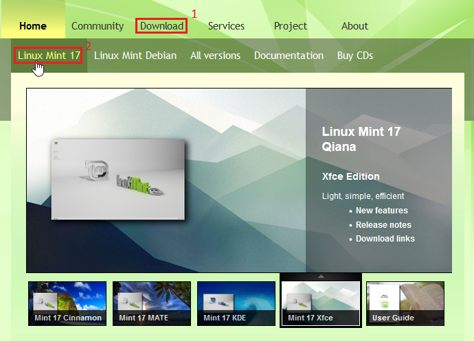 1. 下載 Linux Mint,選擇 Download,再選擇 Linux Mint 17