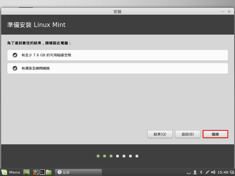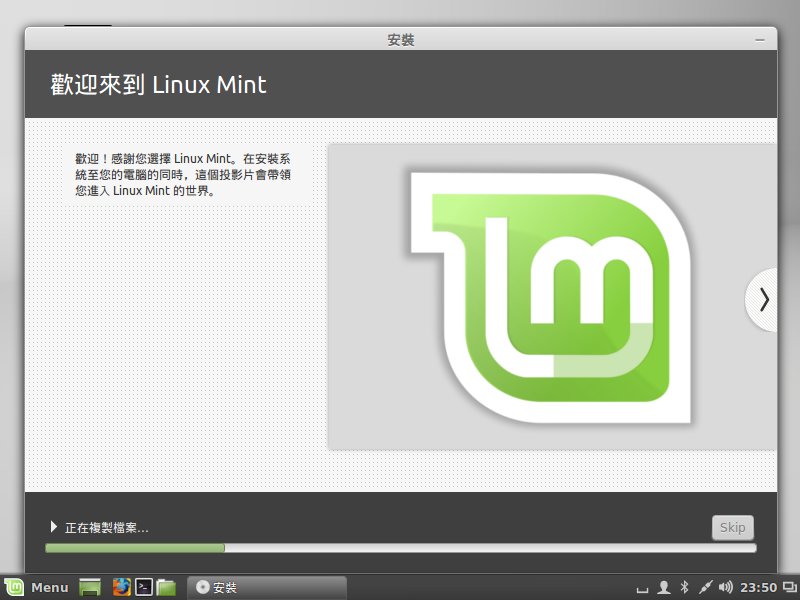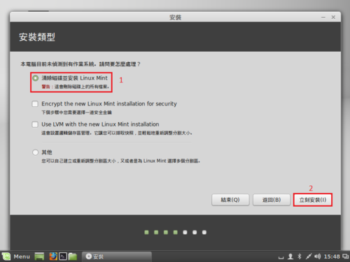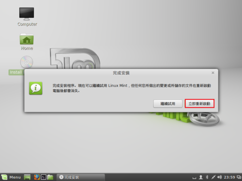 光碟開機的桌面,因為要安裝到硬碟,所以選擇 Install Linux Mint