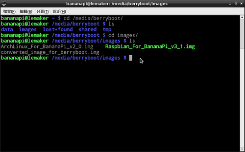 本來一直以為 BerryBoot 只能從網路上下載作業系統來安裝而已,而在 10/1(三)  下午與 Banana Pi  的開發工程師討論過,才發現原來 BerryBoot 的功能非常強大,可以將原本系統的 Image 檔,直接拿來使用,一張記憶卡可以安裝多種作業系統,而且系統有問題,只要修改或刪除在  data 目錄之下相對應的作業系統名稱即可,如果要測試系統,就會非常的方便。