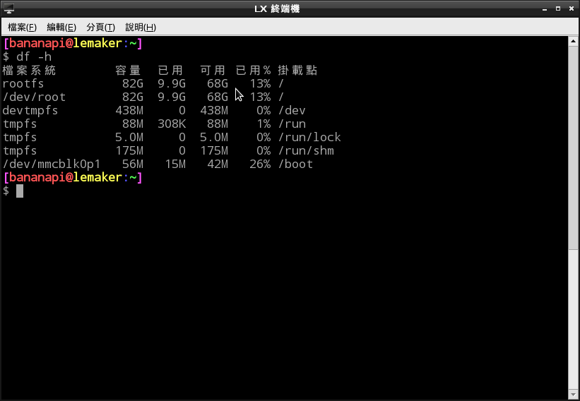 寫這一篇文章的原因是有人詢問我相關的問題,我實作了一次。主要是在 Banana Pi – 從 SATA 硬碟上的 root 分割區來開機 這一篇文章中,已經將 root 分割區移至 SATA 硬碟上,所以原本使用的 SD 卡容量變不須要用那麼大,可以改用以前不要用的 64 / 128 / 256 / 512M …的記憶卡來開機。