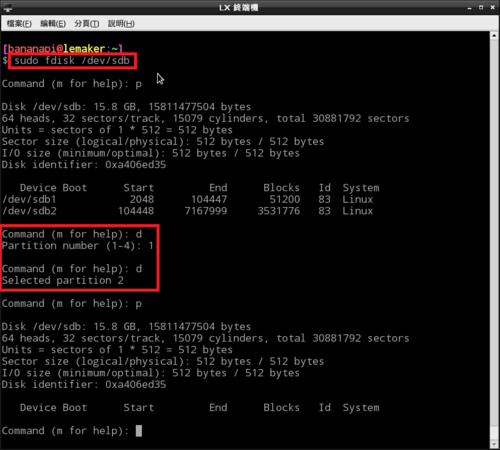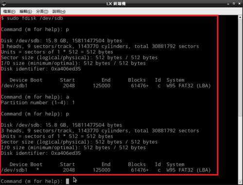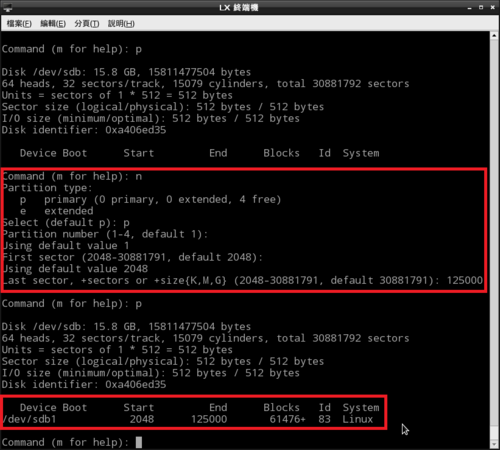 這一個部分最主要是讓 /dev/sdb1 的分割區可以開機(不確定是否一定要做)
