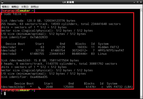 可以發現原本的 /dev/mmcblk0 只剩下一個用來開機的分割區