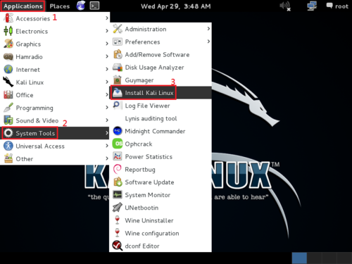 4. 選擇 System Tools / Install Kali Linux,安裝到硬碟
