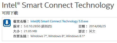 利用這個關鍵字在網路上搜尋了一下了,原來就是 Intel Smart Connect Technology