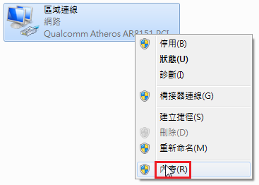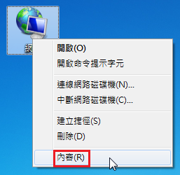 在桌面上的 網路,按滑鼠右鍵,選擇 內容(R)