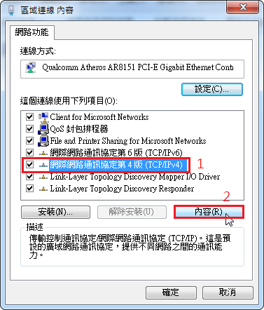 設定方式,以 Windows 7 SP1 x64 Enterprise 為例