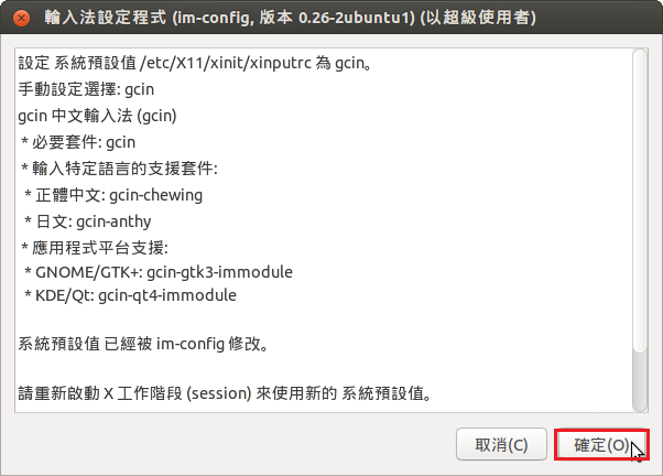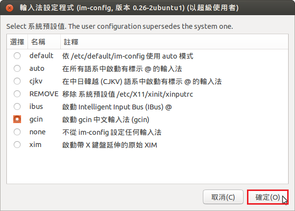 設定 gcin(這裡建議不要用 sudo 來操作)