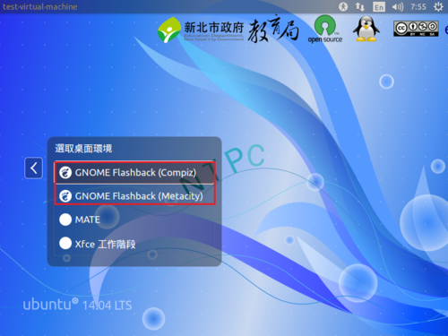 選擇 GNOME Flashback(Compiz) 和 GNOME Flashback(Metacity) 都可以