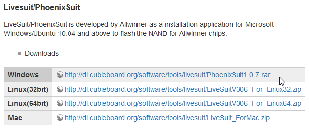 PhoenixSuit 的下載網站:http://docs.cubieboard.org/downloads