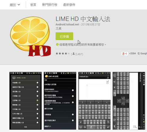 安裝 LIME HD 中文輸入法是想測試一下,可不可以使用鍵盤來使用我習慣使用的行列輸入法,結果是 OK!