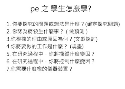這次的觀課是我們第一次以”探究能力”的教學為主要演示重點,為了要很清楚的表現出pe的教學,我在共備時要求他們要”演出”將多個自變項畫成表格的橋段,而且還說:我想把教學錄影分段加說明,旁白,來示範po或pe的教學…所以其實揮玉和宛青老師壓力很大啊!!