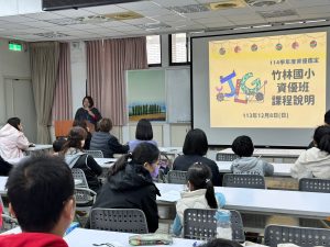 下方為竹林國小資優組長介紹竹林國小課程之照片,