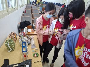 一旁有手作主題的展示區,有興趣的師生能利用休息時間來觀摩討論。