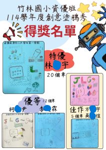 114上學期資優班封面創意設計得獎名單公告,