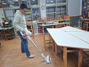 就麻煩學長努力將地板吸一輪囉~