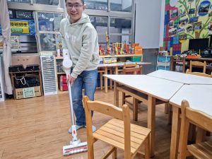 所以離開前,學長主動提及要幫忙打掃教室(溫暖貼心),卻遍尋不到掃把!