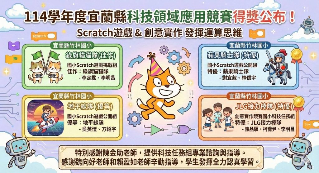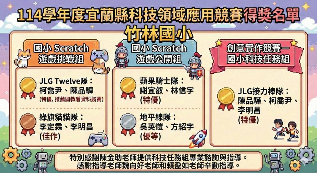 竹林國小資優班的學生在本次的科技領域應用競賽中獲得了非常優異的成績!