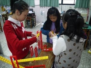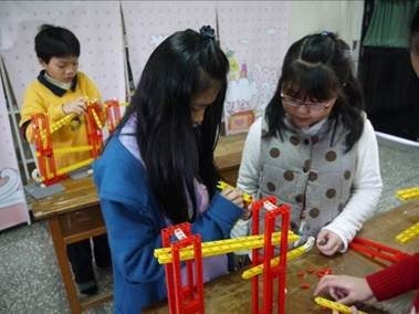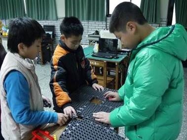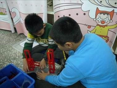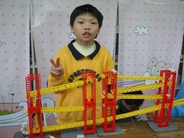 【五年級】科學探究-機關王作者:劉建成2015 年 1 月 8 日2021 年 3 月 18 日期末到了,資優班又增添了一批教具,這一次,阿成師買了一批可以做連鎖機關的大型積木,讓孩子們可以盡情地發揮創意來組合。從基座的組合拆解,到基本零件的認識,慢慢的組合出最基本的機關,讓玻璃珠可以上升與之字下降。楊昊和洋賢動作靈巧,才一會兒的功夫,就已組合完成,真不愧是機關王。其餘各組只要有耐心,一定都可以嘗試成功喔。