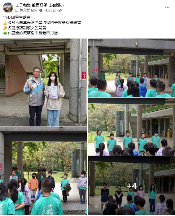 五忠林楷倫、四忠廖晨曦參加114年第1次族語認證 也已通過初級認證