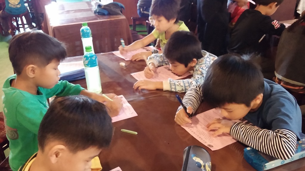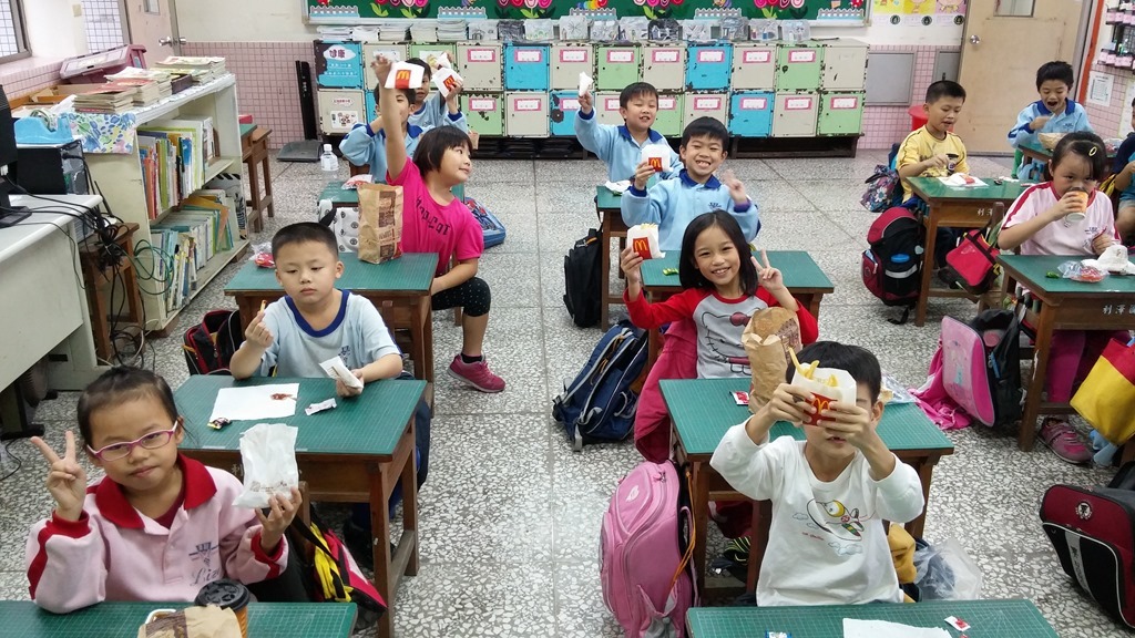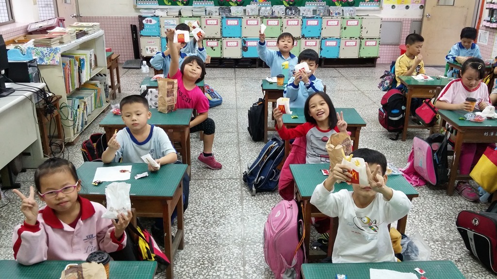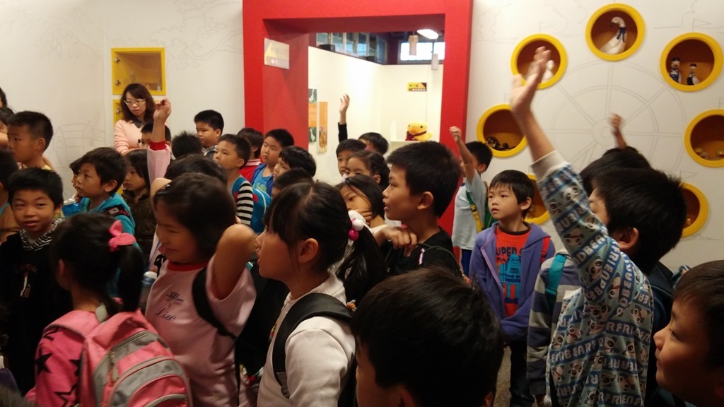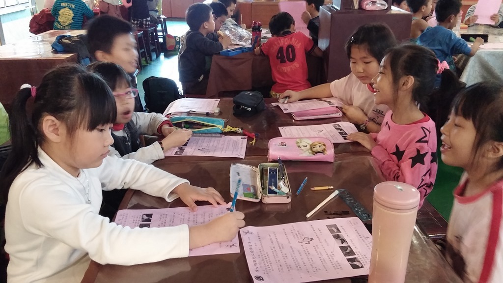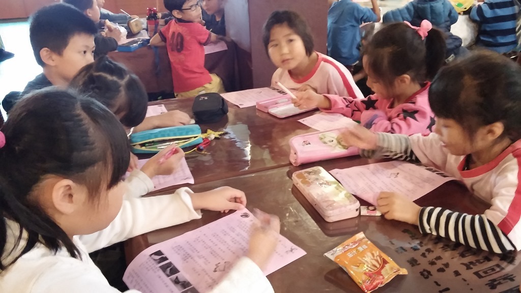 「剪刀~石頭~紙!」三個小朋友開心地在猜拳,忽然看見一群田嬰飛過去,
