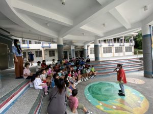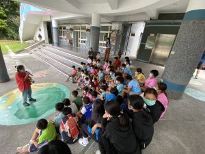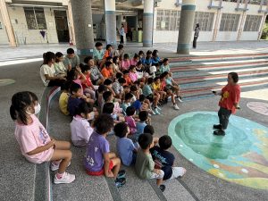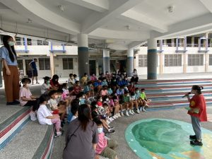 今日教學 : 我的五官,老師還一一比手畫腳,與各年級互動喔~