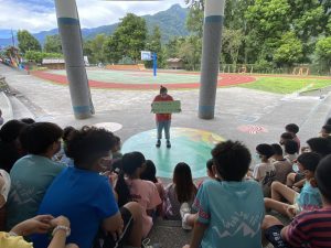 今天教學:七彩的顏色,還邀請部分同學一起上台。