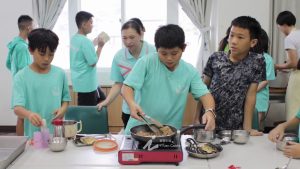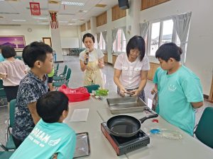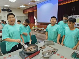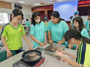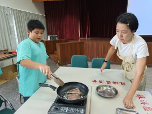 在卉蓁老師與純華老師的指導下,六年級的同學們親手下廚,把新鮮鯖魚煎得金黃香氣四溢~😍