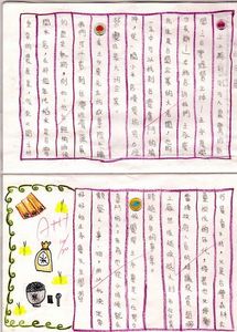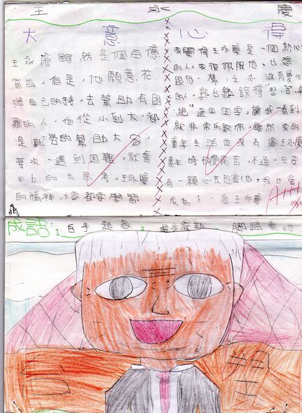 今天老師再寫要參加語文競賽的人,大家都很好奇的跑去看,大家看到自己的名字在上面,都說不要,經過了一翻吵雜後,名單出來了:「演講:陳宥中、江紫筠;寫字(書法):劉心渝、林梣縈;閩南語演說:李家穎、黃俊杰;字音字型:楊子山民、張博堯」老師說:願意參加比賽,精神值得鼓勵,先蓋一個好棒,比賽完再依成績,再加蓋好棒,同學都變的很積極準備,祝他們得獎!