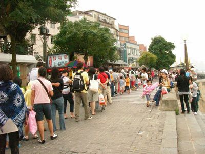 下面這些人都在排隊喔  等著坐船到對岸八里 左岸玩