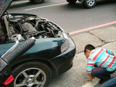 帥氣男仔也幫忙檢查….老爸漏水啦…