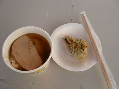 我們吃了深坑臭豆腐 蛋捲 筍湯 黑糖糕 粿仔 ㄚ給 肉圓 大透支 魚丸湯 …