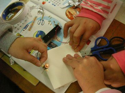 導電物品3:錫箔紙…害羞的小女生…形成通路….燈泡亮了