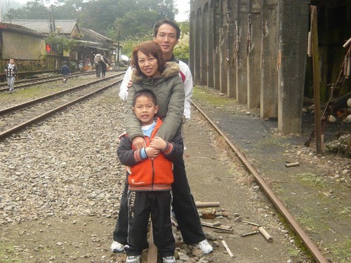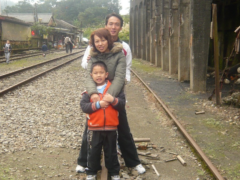 沿著人群 我們全家在鐵軌上 拍一張大合照 右後方是以前的卸煤場