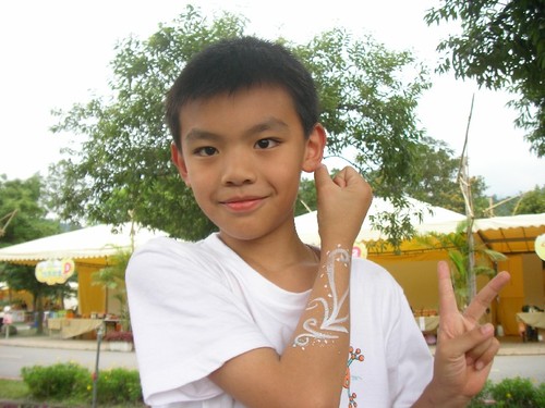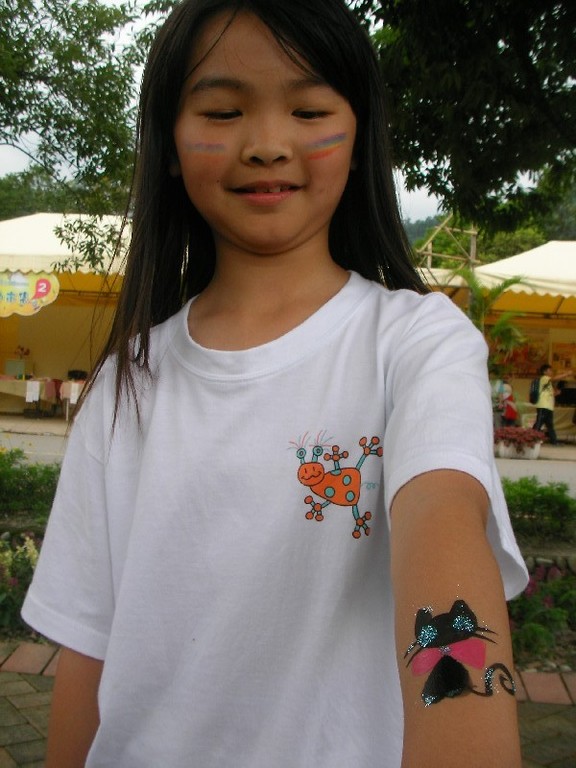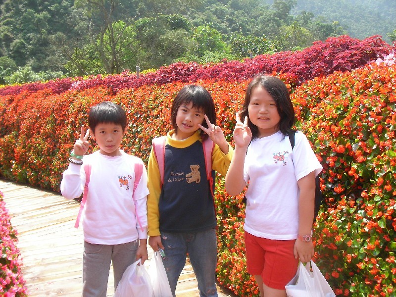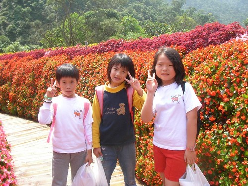 它流洩出美麗的各色花朵…這遇到我愛花的老師 趕緊叫小寶貝當我的模特兒..我要把這美景留在我的相機中