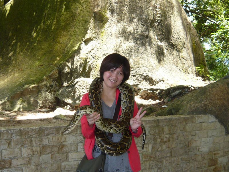 山頂還有莽蛇扮像 就是有一條真的大蟒蛇陪你照相啦